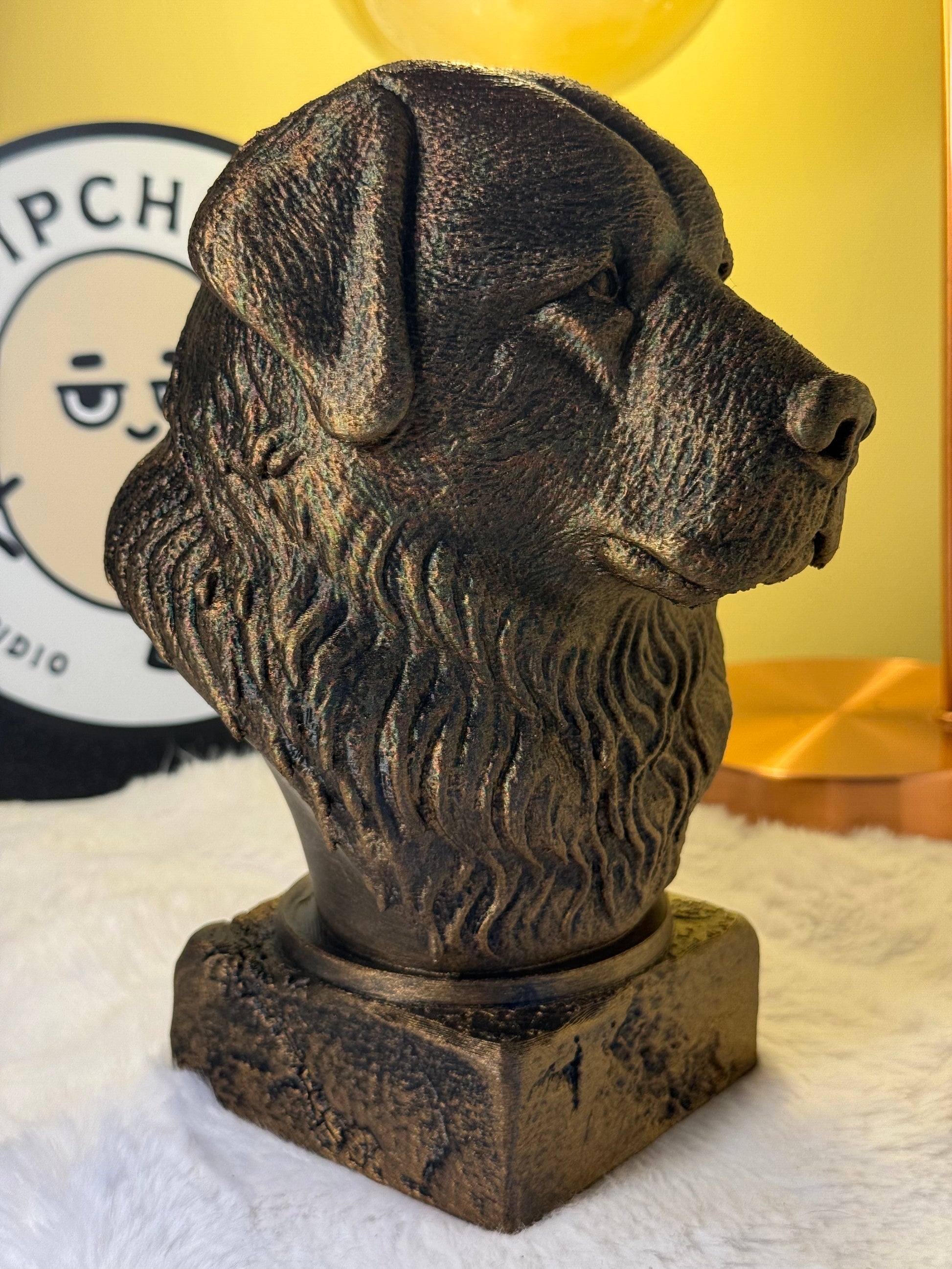 - Antique-style 3D bust of the Caucasian Shepherd, crafted with an antique finish.